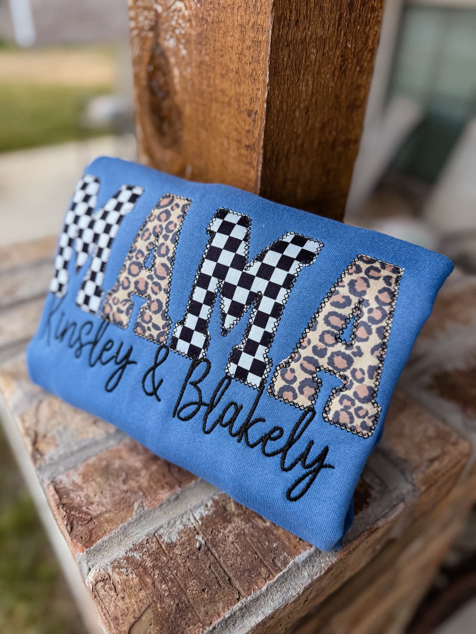 Leopard and Checkered Mama Embroidered Sweatshirt